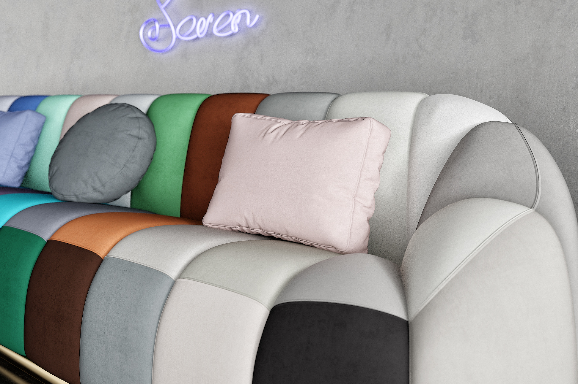 Наши материалы созданы, чтобы вы могли следовать модным тенденциям, таким как color blocking (колор-блок) — это смелое применение ярких, локальных цветов в одном пространстве, которые образуют оригинальные и красочные композиции. С коллекцией SEVEN вы сможете экспериментировать с цветом, создавая акценты или полностью обновляя обивку вашей мягкой мебели.
